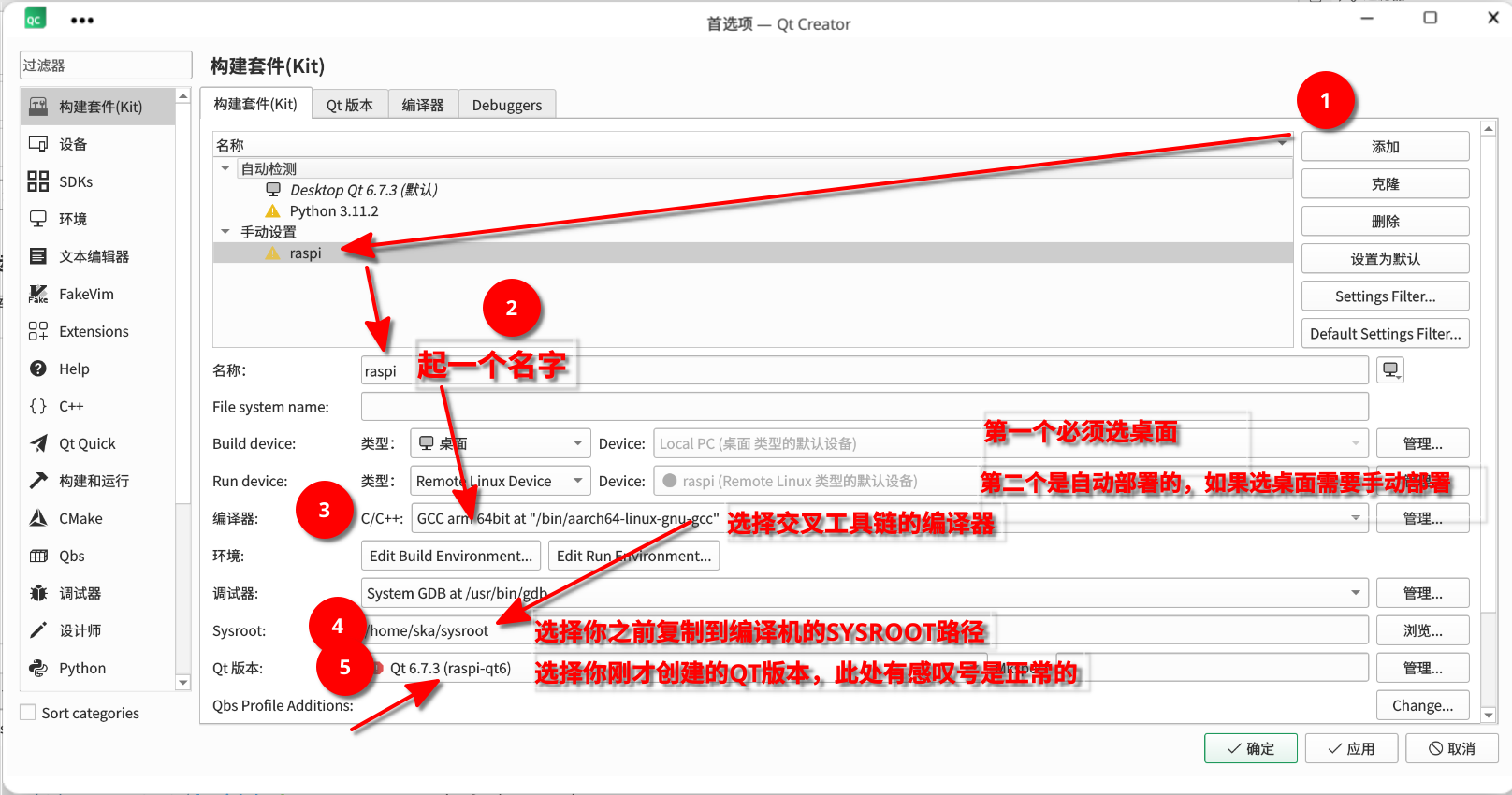/home/ska/Qt/6.7.3/Src创建工具链配置文件:
